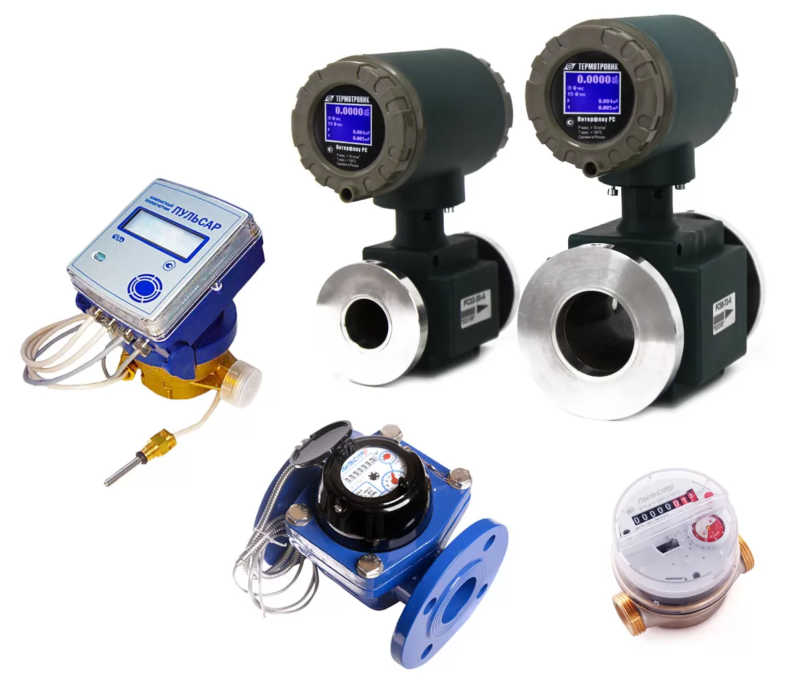 Крыльчатые, турбинные счетчики и расходомеры. Расходомеры и счетчики воды электромагнитные. ТЕПЛОВОДОХРАН, Тепловодомер, Экомера и другие.