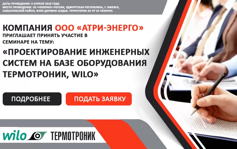 В Ижевске состоялся Ежегодный обучающий семинар «Современные инженерные решения», организованный компаниями ООО «Атри-Энерго», ООО «Термотроник» и ООО «Вило Рус».
